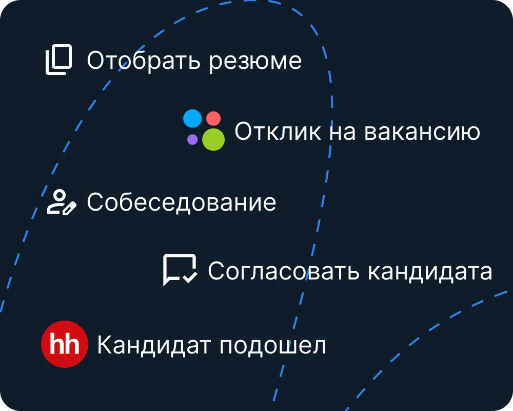 Рекрутеру не нужно запоминать, когда, кому и о чем напомнить. Напоминания, задачи, шаблоны — все появляется автоматически, и HR-специалист понимает, что и когда ему нужно сделать.
