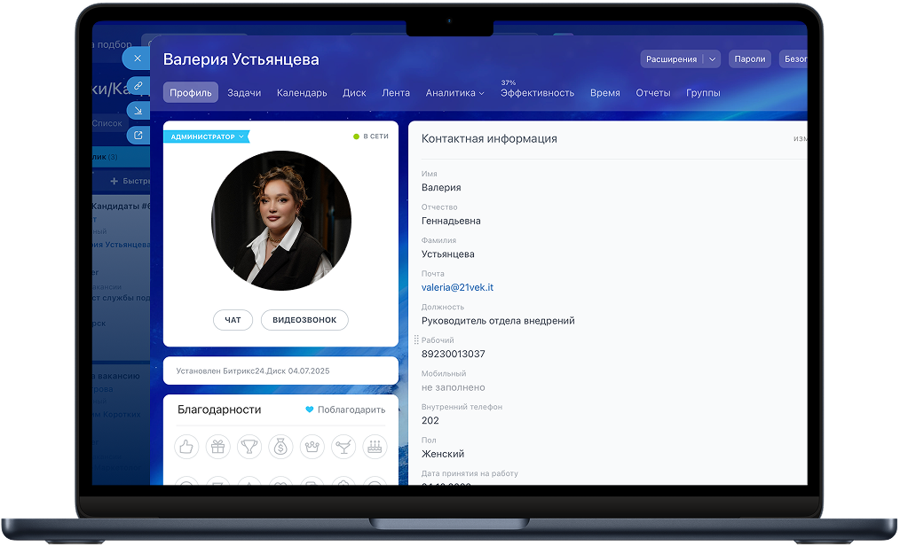 • Компания уже использовала Bitrix24, поэтому решили внедрить модуль автоматизации HR-процессов